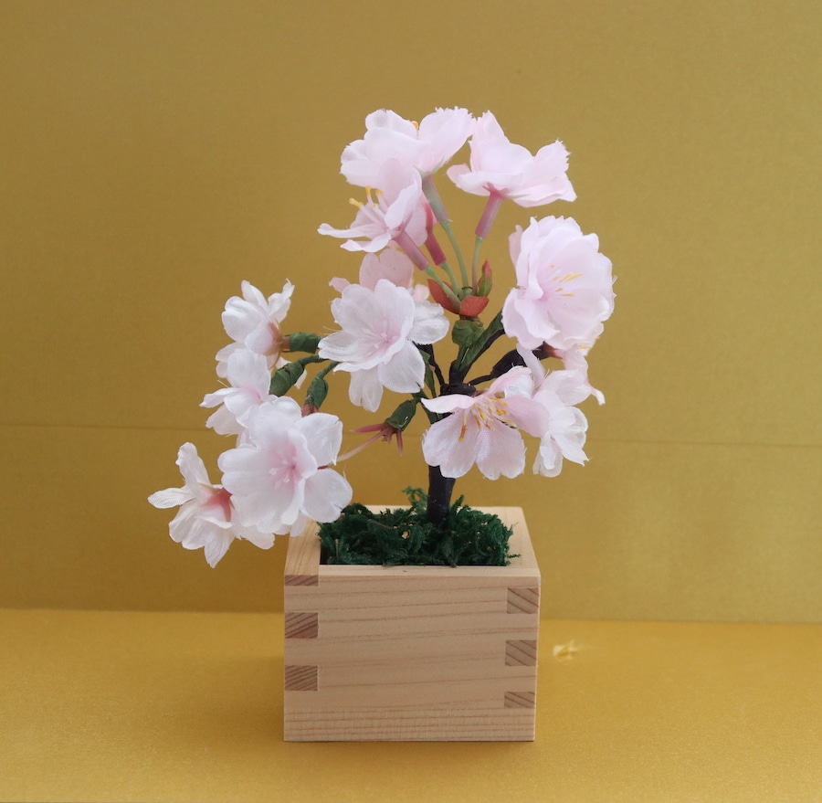 1000年以上も昔から作り続けられている職人が手作りした枡に桜の花々をアレンジしました。枯れない「桜」、ミニ盆栽です。